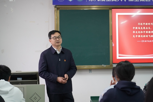 课程伊始,邱勇即以饱满的热情和深厚的理论功底,迅速吸引了同学们的注意力。他从习近平新时代中国特色社会主义思想创立背景、主要内容、历史地位、学用结合四个方面展开授课,站在时代的高度,用历史的视角,深入浅出阐述了马克思主义在中国的发展历程。课堂中,邱勇围绕学习贯彻习近平总书记在全国教育大会上的重要讲话精神、对学校思政课建设的重要讲话精神、《教育强国建设规划纲要(2024-2035年)》、全国两会精神等内容,结合当前国内外形势,对习近平新时代中国特色社会主义思想在实践中的应用进行了深入剖析,强调要深刻把握“两个结合”的实践要求,坚守好马克思主义这个魂脉和中华优秀传统文化这个根脉,以高度的文化自信凝聚中医药传承创新发展新动能。