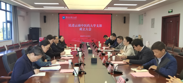 云中讯(统战部)11月19日,中国民主促进会云南中医药大学支部成立大会在呈贡校区召开。云南省政协副秘书长、民进云南省委会专职副主委金振辉,民进云南省委会秘书长马孟杰,校党委副书记祁苑红,民进云南省委会组织处处长谭婷、参政议政处副处长毛迪,学校统战部负责人出席会议。