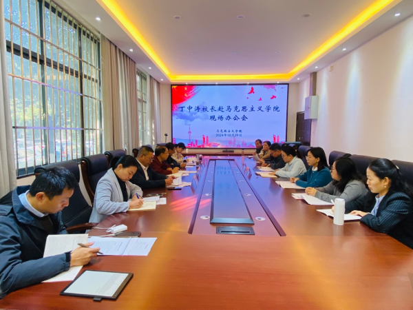 云中讯(通讯员 王昊英)10月29日上午,校长丁中涛深入马克思主义学院主持召开现场办公会,深入学习贯彻习近平总书记关于学校思政课建设的重要指示精神,听取马克思主义学院建设发展情况汇报,对马克思主义学院高质量发展提出工作要求,推进开创学校思想政治教育新局面。