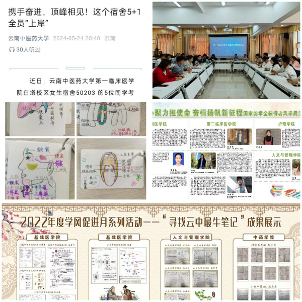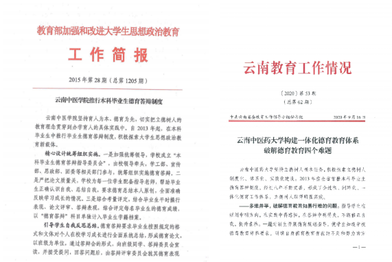 化德育实践,连续11年组织本科生进行德育答辩。扎实推进党建进学生社区,加强中医药文化育人品牌建设,主动占领学生“思想、学习、生活”三大领域,打通中医药特色育人“最后一公里”。培育“学读用经典”“信仰的力量”“医者岐黄志”“奔跑中药星”“针康文化节”等学生活动品牌,重点打造“和合屋诚信无人超市”德育实践教育平台。1个学院入选云南省“三全育人”示范院系,5项校级“三全育人”综合改革试点项目和3项“十大育人”体系改革试点项目成效凸显。