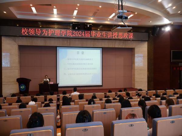 云中讯(通讯员 周增涛)6月4日下午,校党委副书记祁苑红在呈贡校区为护理学院2024届毕业生讲授题为“铸牢中华民族共同体意识 争做民族团结进步示范”的思政课。