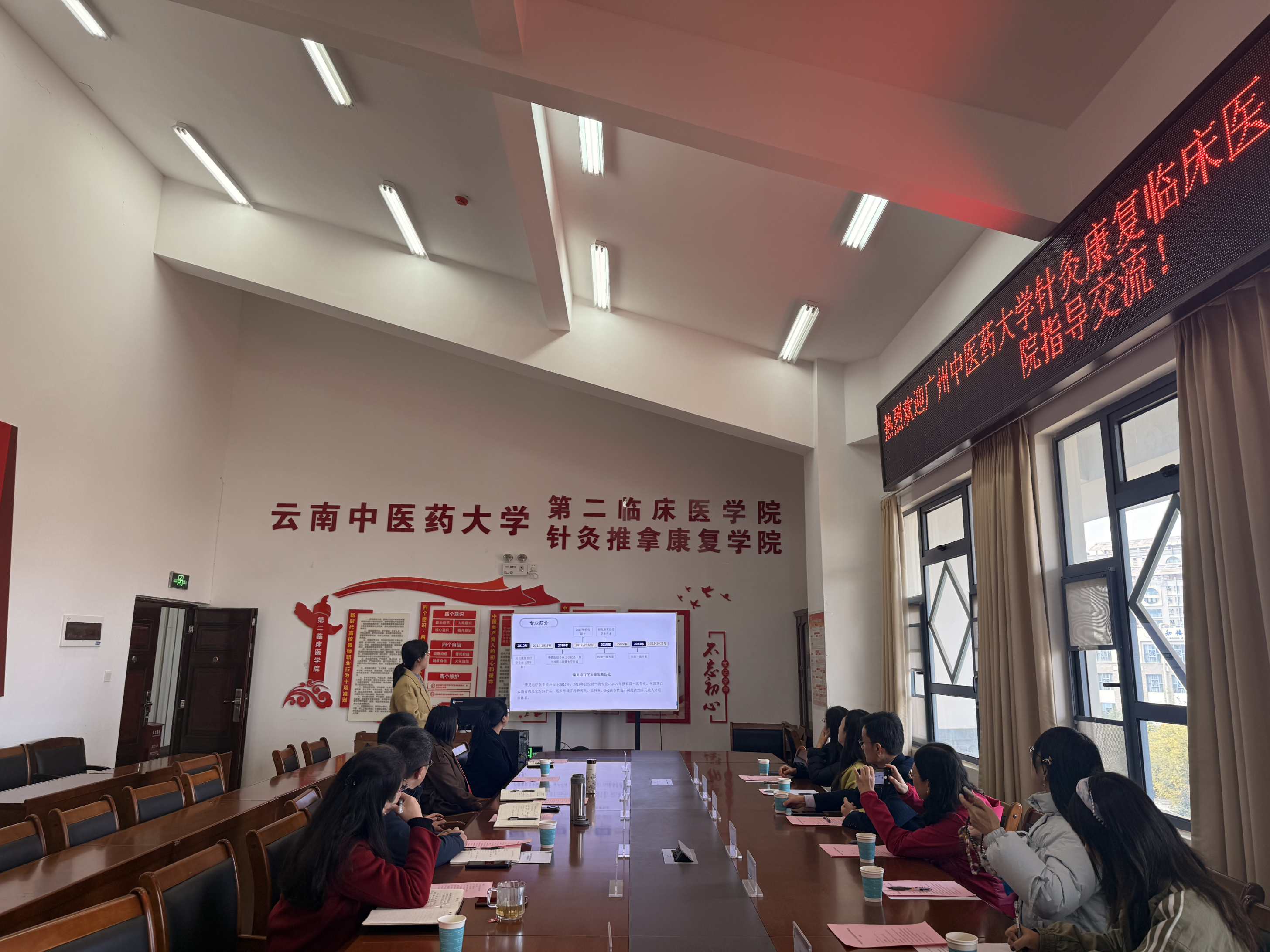 云中讯(通讯员 金亚菊)11月22日,广州中医药大学针灸康复临床医学院刘春龙带领教学骨干一行到我校第二临床医学院,围绕康复治疗学专业教学建设开展专题调研交流。第二临床医学院书记唐柱生、副院长黄培冬、教学管理科主任张蕾及康复治疗学专业教师等出席座谈会。