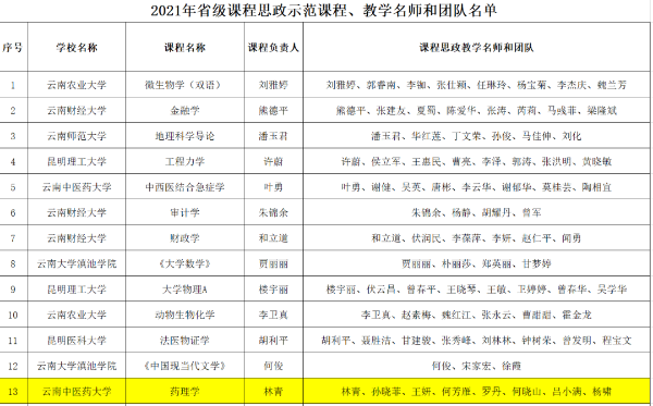 “药理学”获评云南省高校课程思政示范项目