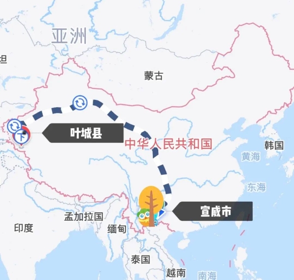 从范庆存的家乡宣威市到他工作的叶城县交通距离4000多公里
