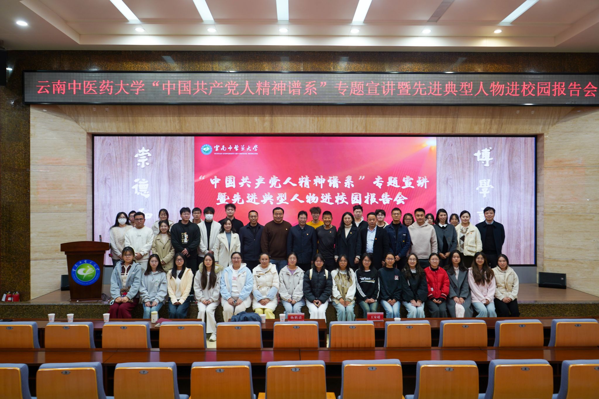 云中讯(新闻与融媒体中心)12月5日下午,云南中医药大学在呈贡校区举行“中国共产党人精神谱系”专题宣讲暨先进典型人物进校园报告会,邀请残奥会世界冠军、全国自强模范、中国青年五四奖章获得者王家超,“全国岗位学雷锋标兵”“中国青年优秀志愿者”、昆明市延安医院学生党总支书记唐维伟两位青年党员分享他们的励志故事和奉献人生。活动旨在响应教育部等七部门发出的全国高校“立报国强国大志向 做挺膺担当奋斗者”宣传教育号召,通过身边优秀青年共产党员的典型示范,教育引导广大云中学子在学思践悟中国共产党人精神谱系中追寻信仰之源、坚定理想信念、厚植家国情怀、勇担历史使命,努力成长为担当民族复兴大任的时代新人。