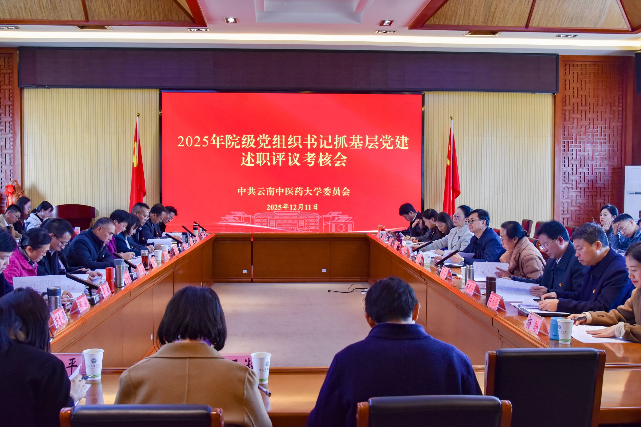 云中讯(组织部)12月11日,学校召开2025年院级党组织书记抓基层党建工作述职评议考核会。校党委书记邱勇主持会议并讲话,省委教育工委考核组马莉同志到会指导。校党政班子成员、各院级党组织主要负责人、相关部门负责同志,党代表、人大代表、政协委员及师生党员代表参加会议。