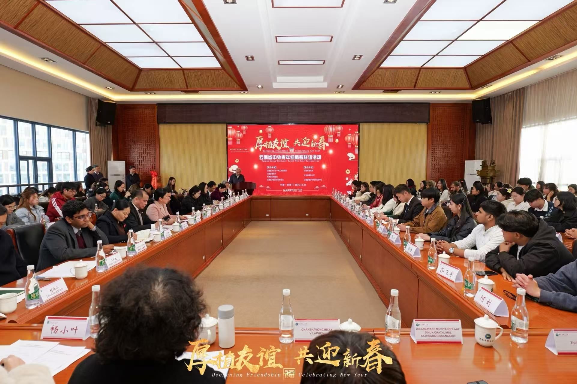 云中讯(新闻与融媒体中心)新春序曲奏响,友谊之花绽放。2025年12月26日,“厚植友谊共迎新春”云南省中外青年迎新春联谊活动在我校呈贡校区举行。