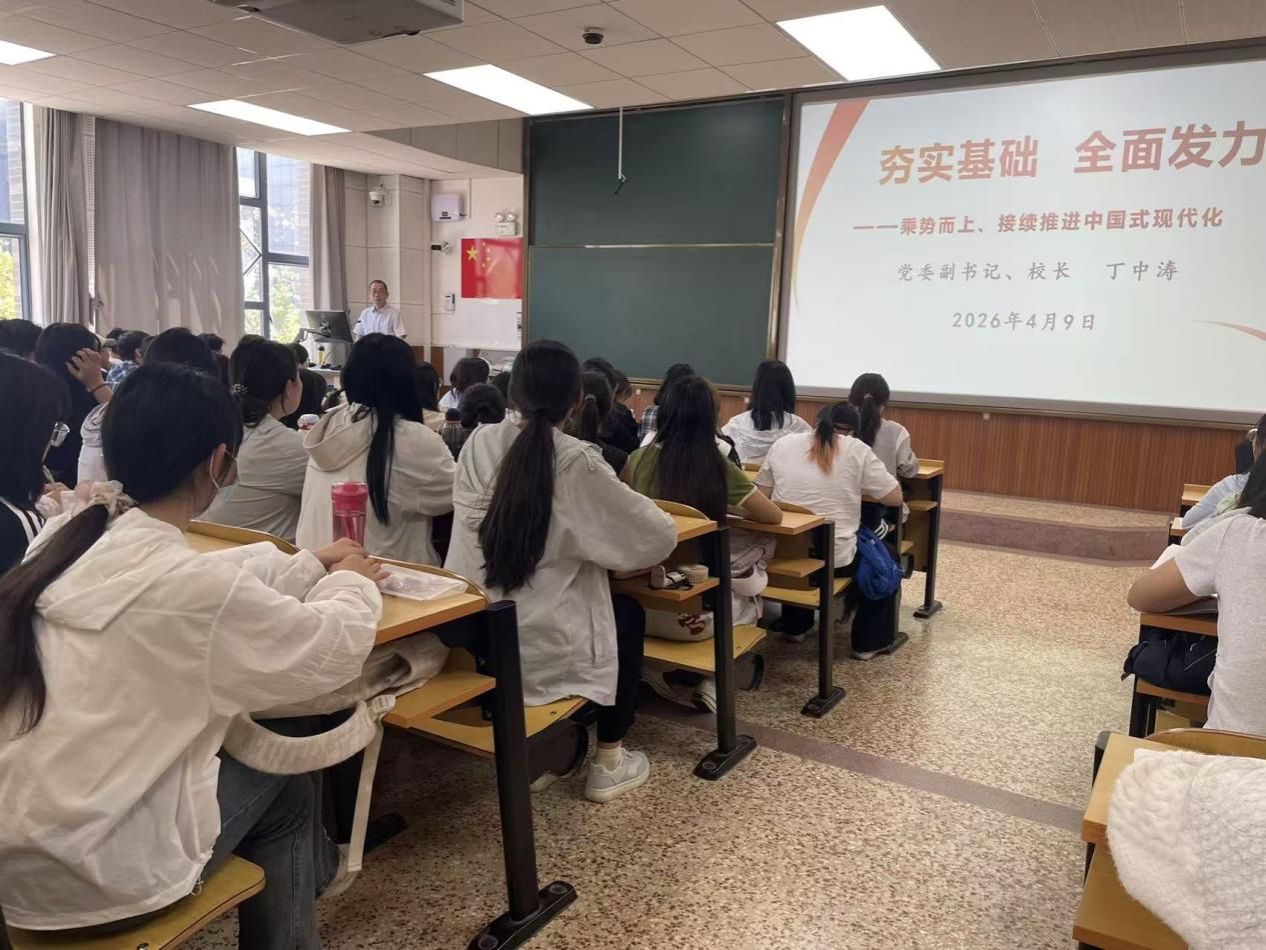云中讯(通讯员 刘蕊露)2026年4月9日下午,校党委副书记、校长丁中涛走进课堂,以“夯实基础,全面发力—乘势而上,接续推进中国式现代化”为主题,为基础医学院2025级中西医结合临床1班、4班学生讲授了一堂站位高远、内涵深刻的思想政治理论课。