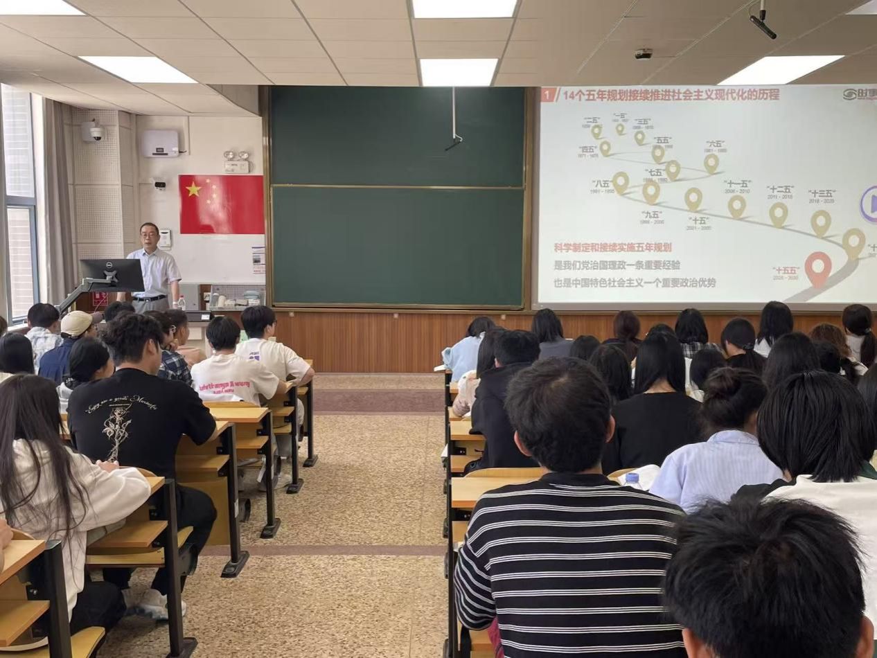 丁中涛指出,制定实施五年规划是党治国理政的重要方式,要深刻把握这一制度优势。他系统阐释 “十五五” 时期我国发展所处的历史方位,阐明其作为基本实现社会主义现代化关键阶段的重要意义;结合国家战略部署,解读经济社会发展重点方向;将党的二十届四中全会精神与“十五五”规划纲要的核心要义娓娓道来,结合中医药专业特色,鼓励同学们深耕专业、勇于创新,把青春奋斗融入健康中国建设。