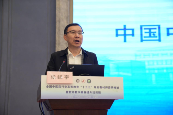 张峘宇在致辞中介绍了本次培训班举办的目的意义和内容设置,同时向参训教师提出三点希望。一是要充分认识教育数字化的重要时代意义;二是要严格落实行业规划教材的各项编写要求;三是要增强创新意识,争当中医药教育“数字标兵”。