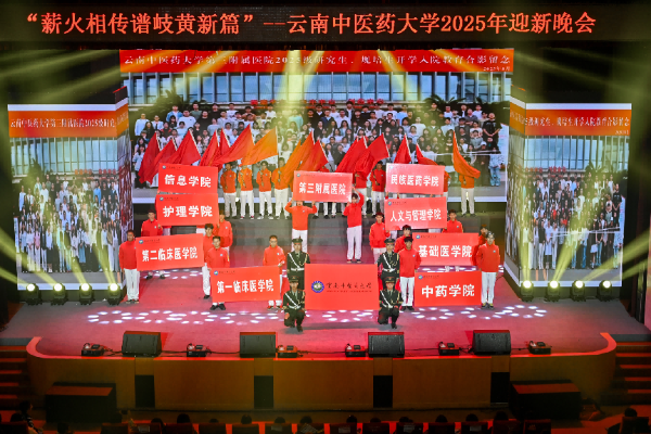 云中讯(校团委)10月24日晚,“薪火相传谱岐黄新篇”2025年迎新晚会在呈贡校区兰茂堂举行。党委书记邱勇、党委副书记杨鹤清、纪委书记陈颖出席晚会。办公室、宣传部、学工部、研工部、保卫处、对外合作交流处、后勤服务集团、马克思主义学院、图书馆等部门主要负责同志、各学院分管学生工作同志、学工办、团委(团总支)负责同志,2025级新生辅导员、班主任等,及1300余名2025级新生代表参加。