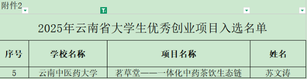 云中讯(就业创业指导中心)云南省教育厅于2025年9月25日发布《关于2025年云南省大学生创业就业实践基地和优秀创业项目入选名单的公示》,我校大学生创业就业实践基地成功进入省级实践基地公示名单,“茗草堂 —— 一体化中药茶饮生态链项目”顺利跻身省级优秀创业项目公示行列,这一阶段性成果充分体现了省教育厅对我校创新创业工作的认可与肯定。