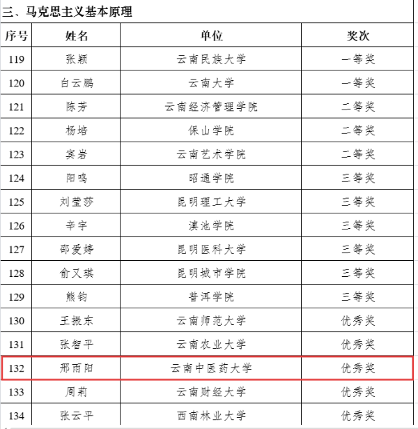 云中讯(马克思主义学院)近日,云南省高校思想政治理论课教学展示在云南民族大学举行。经过初赛、复赛等环节的激烈角逐,我校选派选手马克思主义学院王易晗老师荣获本科组课程“中国近现代史纲要”展示比赛一等奖,邢雨阳老师荣获本科组课程“马克思主义基本原理”展示比赛优秀奖。