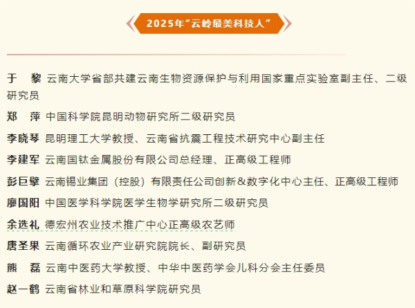 “云岭最美科技人”是云南省科学技术厅、中共云南省委宣传部、云南省科学技术协会、中国科学院昆明分院联合开展的评选活动,旨在激励广大科技工作者争做科技自立自强排头兵,学最美、当最美,为云南高质量发展勇立新功。