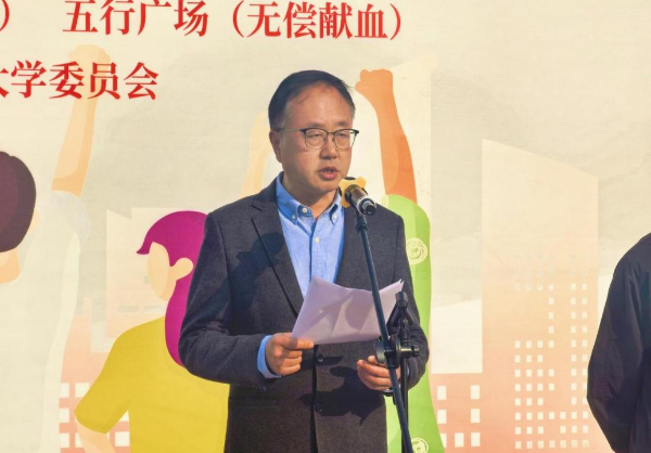 李小天代表血液中心向全体师生致谢。他表示,自2019年第五届无偿献血彩虹跑在我校启动以来,广大师生以“我健康、我献血、我快乐”的实践行动,将校园打造成凝聚爱心与热血的青春阵地。