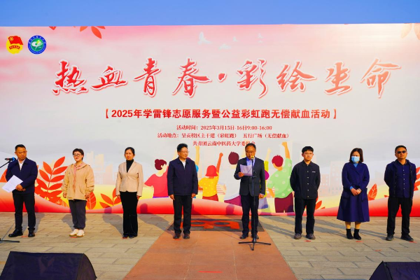 云中讯(校团委)3月15日至16日,校团委和昆明市血液中心联合在我校呈贡校区举办“学雷锋志愿服务月”暨校园公益彩虹跑·无偿献血活动。校党委副书记杨鹤清,云南昆明血液中心党委书记李小天,呈贡区卫健局局长李争容,呈贡团区委副书记李春杨,学工部部长王梅,研工部部长王文静,保卫处处长秦红军等领导嘉宾出席活动。各学院团委(团总支)书记、青年学生,共计近千余名师生以青春之名传递生命温度。