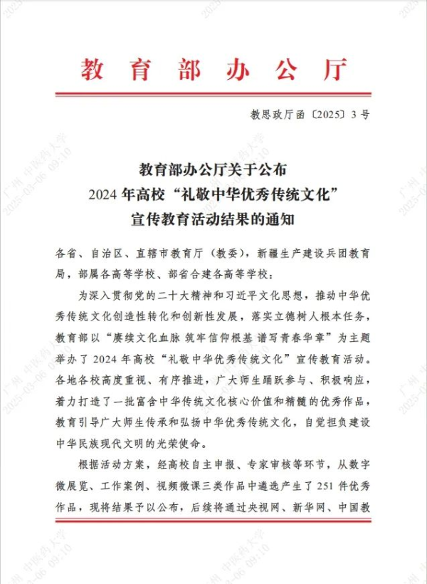 教育部举办高校“礼敬中华优秀传统文化”宣传教育活动,旨在深入贯彻党的二十大精神和习近平文化思想,推动中华优秀传统文化创造性转化和创新性发展,落实立德树人根本任务。“藏医药文化展”数字展是我校推动中医药文化“活起来”“走出去”的生动实践。入选教育部“礼敬中华优秀传统文化”高校主题数字微展览联展名单,是对我校展览工作的高度认可。