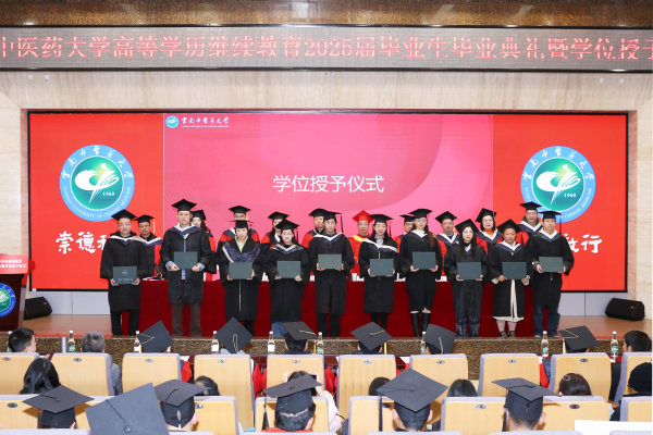 丁中涛对3584名2025届毕业生顺利毕业表示祝贺并送上真挚祝,希望大家以今天的毕业为人生新的起点,在未来中医药的道路上时刻牢记党和国家的殷切期望,致力于做中医药事业的传承者、创新者、发展者。他对毕业生们提出三点要求:一是立品德,立志做崇尚医德的中医人;二是学仁术,立志做博学岐黄仁术的中医人;三是成大医,立志做大医精诚的中医人。