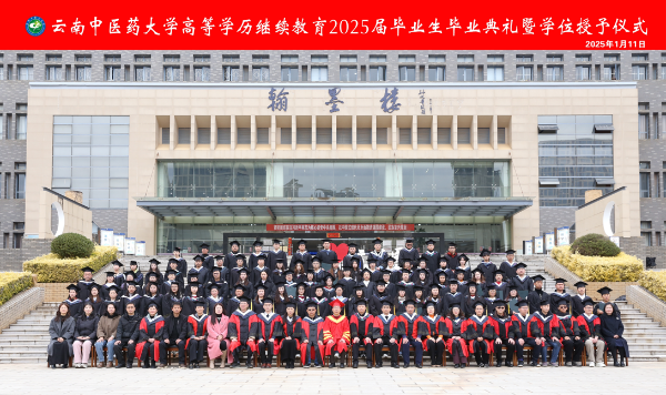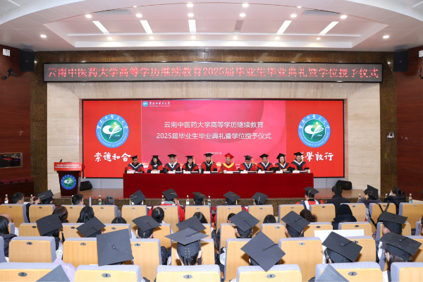 云中讯(继续教育学院)1月11日下午,云南中医药大学高等学历继续教育2025届毕业生毕业典礼暨学位授予仪式在呈贡校区举行。学校16家校外教学点负责人和教学管理人员、2025届毕业生代表共200余人现场参加典礼。校长、校学位评定委员会主席丁中涛,副校长、校学位评定委员会副主席陈祖琨,学校高等学历继续教育各专业承办二级学院主要领导出席典礼。