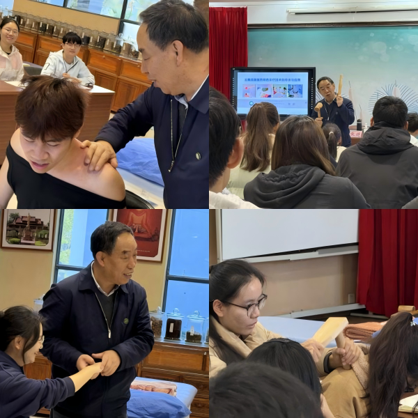 教学互动环节,张超教授向大家讲解各个民族医药特色诊疗技术并做诊疗教学演示,同学们积极体验民族医药特色疗法。
