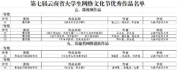 云中讯(新闻与融媒体中心)近日,云南省教育厅公布了第七届云南省大学生网络文化节和云南省高校网络教育优秀作品推选展示活动遴选结果,我校多件作品脱颖而出,获一等奖2项、二等奖6项。具体获奖名单如下: