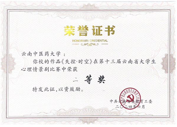 云中讯(学工部)6月5日,由中共云南省委教育工委、省教育厅主办,云南交通职业技术学院承办的云南省第十三届大学生心理情景剧决赛圆满结束。经前期专家评审,15个参赛作品进入现场决赛。我校心理健康教育与服务中心和基础医学院携手打造的原创心理情景剧《失控·时空》荣获二等奖。