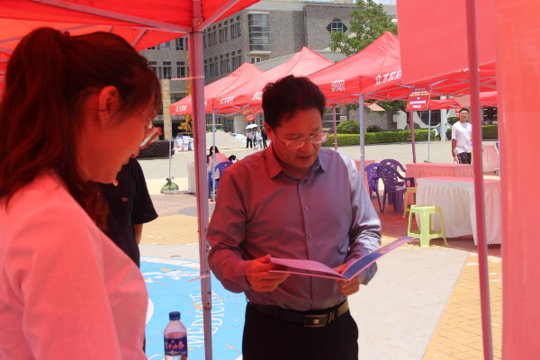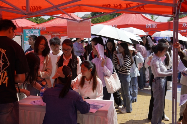 校党委副书记杨鹤清来到招聘现场与用人单位亲切交谈,了解企业人才需求。毕业生们带着简历和自荐信,仔细阅读用人单位招聘信息,积极主动与招聘人员沟通交流。