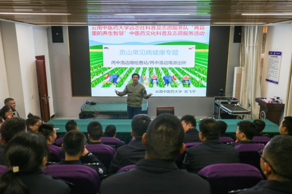 志愿服务期间,校党委副书记杨鹤清和贡山县副县长张文芳共同出席在云中中医馆举行的云南中医药大学社科普及志愿服务实践基地授牌仪式。志愿服务队为闻讯前来的群众送去中医四季养生、八段锦功法等健康科普知识,送去药品和《峡谷深处的健康智慧:怒族传统医药文化智慧怒族传统医药文化》等书籍,引导群众了解中医药文化知识,学习中医药典籍中蕴藏的健康养生智慧并运用于日常生活中。在丙中洛中心小学,志愿服务队员讲授了题为“中医五脏健康养生“的专题讲座,开展了中医药文化科普宣传、现场捐赠药品书籍和发放科普手册等活动进行志愿服务活动,通过普及简单的中医手法、现场制作中医药香囊等活动激发师生对中医药知识学习的浓厚兴趣。丙中洛常年湿冷,患痹证、瘀证的人较多。志愿服务队结合当地特点,在丙中洛边境检查站讲授了题为“贡山常见病预防”的专题,受到民警们的热烈欢迎。大家表示,老师的讲授通俗易懂,很接地气,他们很需要这样的健康养生知识。