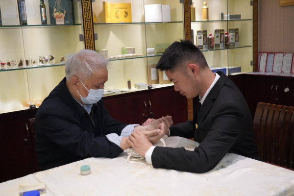 在学校圣爱创业园,李忠杰了解了学校中医药大健康产品的研发推广、中医养生茶饮等多个领域,并现场体验了中医问诊。