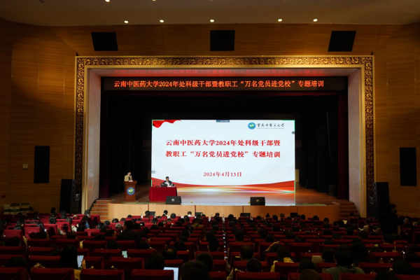 云中讯(组织部)2024年4月13日上午,学校处科级干部暨教职工“万名党员进党校”专题培训班在呈贡校区举行。在家校领导、全校处科级干部、教研室(实验室)主任、教职医务员工党员共1000余人参加培训。校党委书记邱勇作开班动员讲话并讲授专题党课。校党委副书记祁苑红主持开班仪式。