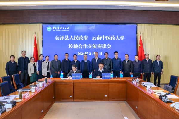 王正宇、俞捷代表双方签订战略合作协议。座谈会上,俞捷介绍了学校建设发展基本情况,唐开成介绍了会泽县中医医院基本情况,双方与会人员围绕加强校地合作、人才培养和引进等方面进行了深入交流。