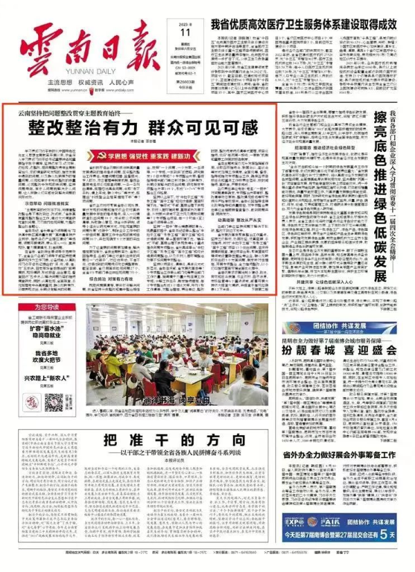 8月11日,《云南日报》头版头条主题教育重点报道关注我校绩效分配制度改革
