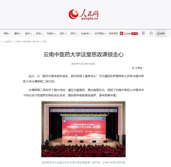 11月10日,人民网报道我校张桂梅思政大讲堂分课堂