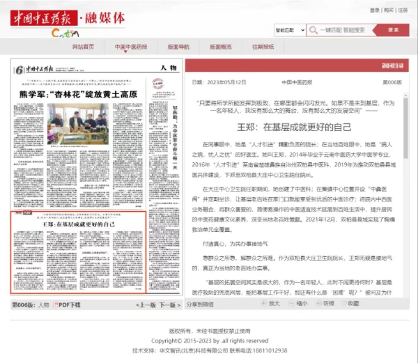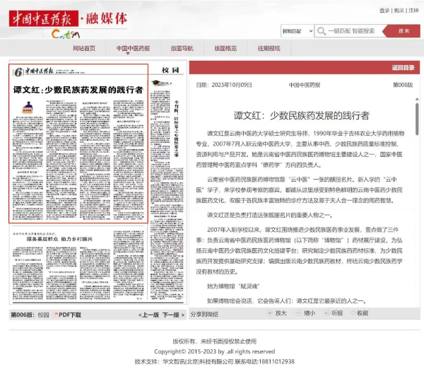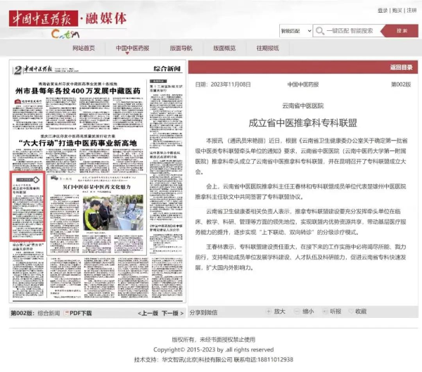 11月6日,《中国中医药报》6版头条报道