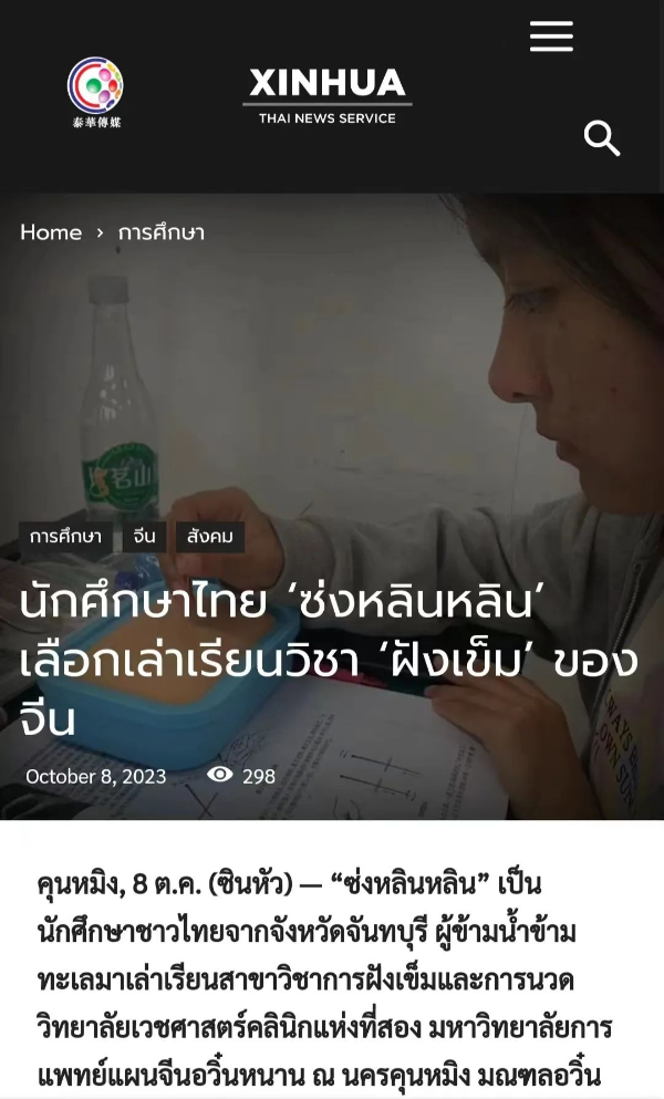 10月8日,新华社泰国平台刊发泰国留学生在我校学中医报道