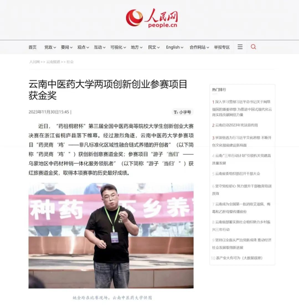 2023年,我校获得的重量级奖项主要包括:中华中医药学会科学技术一等奖、云南省科技进步一等奖、全国创新创业参赛项目金奖等。对此,我校精心组织采写稿件,并积极向权威主流媒体平台推荐,新华网、人民网、央视网、学习强国、《云南日报》、云南网、《昆明日报》等媒体平台纷纷推出相关报道,形成了重大成果奖项的宣传声势。