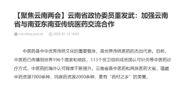 【2023云南省两会】看提案丨拓展中医药对外交流合作