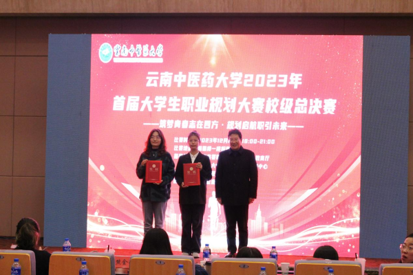 云中讯(就业创业指导中心)2023年12月26日,以“逐梦青春志在四方,规划启航职引未来”为主题的首届全国大学生职业规划大赛云南中医药大学校级决赛在呈贡校区翰墨楼报告厅举行。学校党委副书记杨鹤清,就业创业指导中心、各学院有关负责人和师生代表200余人参加活动。来自昆明理工大学、云南交通职业技术学院、华清教育集团、云南健阵医药集团股份有限公司等5位专家进行评审。