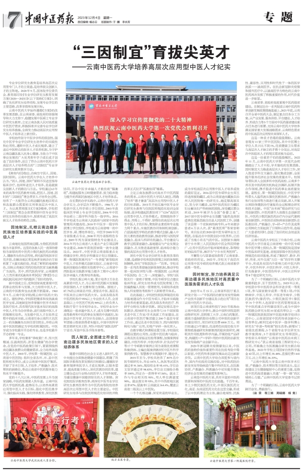 不懈努力与显著成效获得了云南省委、省政府的肯定。2022年,学校关于高层次应用型中医专硕的培养模式获云南省教学成果一等奖。
