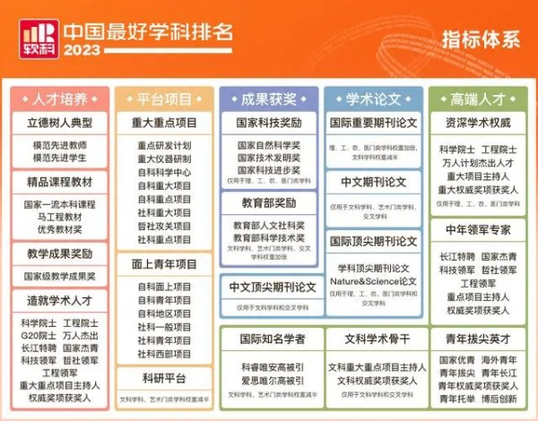软科最好中国学科排名是由高等教育评价专业机构软科发布的年度中国大学学科排名,首次发布于2017年。2023年排名榜单包括98个一级学科,各个学科排名对象是在该一级学科设有学术型研究生学位授权点的所有高校,发布的是在该学科排名前50%的高校,共有485所高校的5053个学科点上榜。