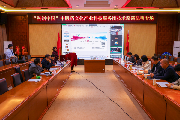 “科创中国”技术路演活动是中国科协打造的促进优质技术项目转移和成果转化的网络服务平台,中医药领域技术路演活动由中医药文化产业科技服务团牵头推进。今年的中医药领域技术路演在昆明设立专场对接会,由中华中医药学会、云南省科学技术协会主办,我校及昆明市科学技术协会承办。中华中医药学会国际交流部主任、科技服务团项目负责人闫铮,云南省科协科普资源信息中心主任杨秀峰,昆明市科协党组书记、常务副主席齐江线上参会;我校副校长邰先桃出席线下会议并致辞,科技处副处长李莉主持会议。