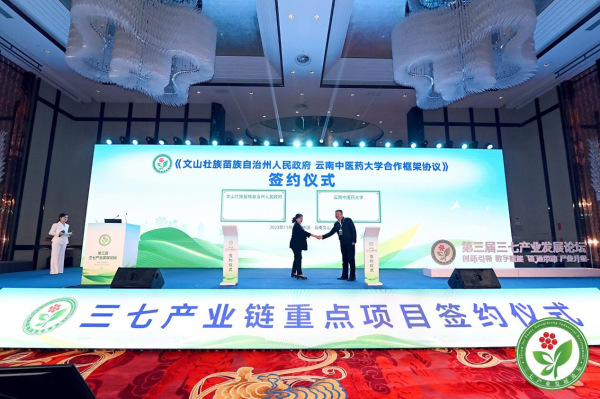 云中讯(规划发展办公室)11月7日上午,在文山壮族苗族自治州举办的第三届三七产业发展论坛上,学校与文山州人民政府签署战略合作协议。副校长陈祖琨与文山州副州长田燕分别代表双方签约。