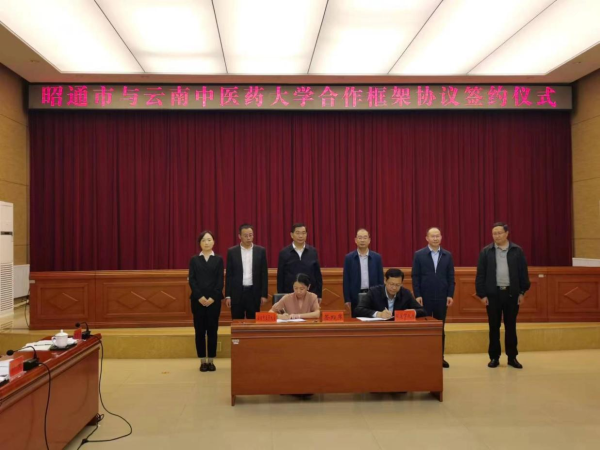 9月21日下午,云南中医药大学与昭通市政府合作框架协议签约仪式在昭通市政府视频会议室举行。昭通市委副书记、市长杨承新主持签约仪式,副市长马洪旗介绍了昭通医疗卫生事业、中草药资源及产业情况,并简要介绍合作框架协议内容。杨承新表示昭通市与云南中医药大学的合作有基础、有条件、有需求、有前景,希望双方在下一步的合作中,共同开创校地合作新格局、不断取得校地合作新成果、努力构建校地合作新局面。丁中涛希望双方进一步拓宽合作领域、创新合作方式,在高素质中医药人才培养、中医药传承与创新、中医药民族医药产业发展、中医药服务体系建设、中医药交流与合作等方面取得新的成绩。