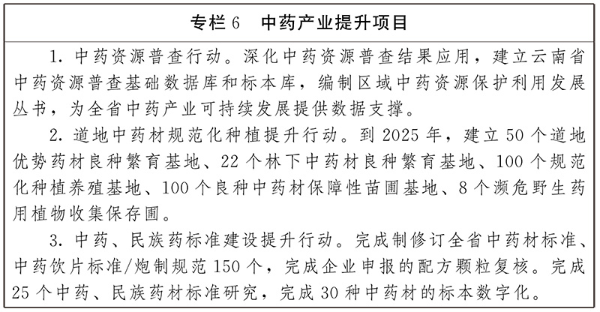 《云南省“十四五”中医药发展规划》中药产业提升项目