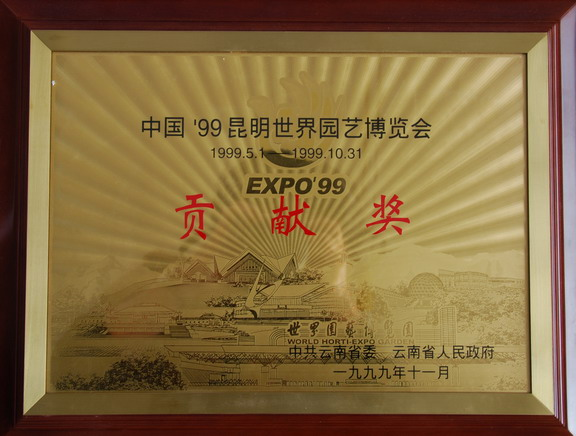 我校获得中国’99昆明世界园艺博览会贡献奖