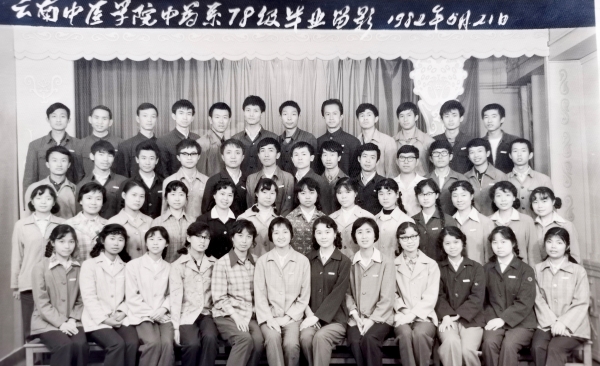 学校中药系1978级毕业留影,朱兆云(前排左六)2021年当选中国工程院院士