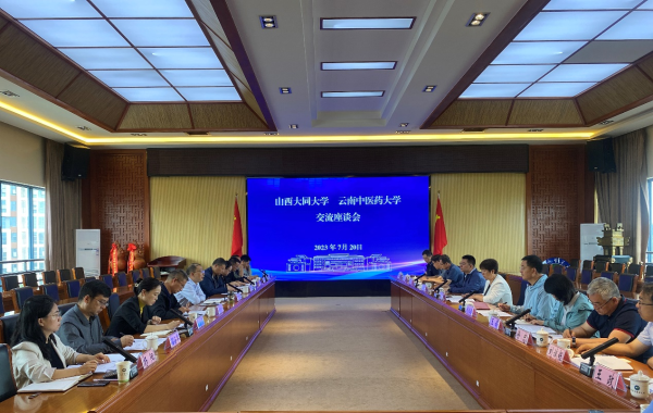 云中讯(办公室)7月20日上午,山西大同大学校长姚英丽、副校长史水鸿、马轶明一行到我校调研交流。校党委副书记、校长丁中涛出席并主持调研座谈会,副校长陈祖琨参加座谈,并在会前陪同参观了云南省中医药民族医药博物馆。