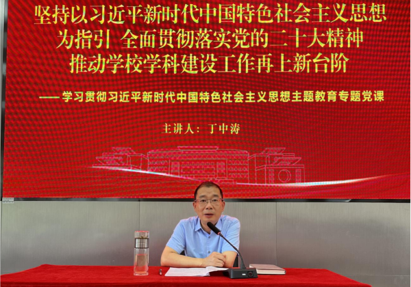 丁中涛以《坚持以习近平新时代中国特色社会主义思想为指引全面贯彻落实党的二十大精神推动学校学科建设工作再上新台阶》为题,从党的二十大报告中对教育、科技、人才的具体内容为切入点,以自身工作经验为例,围绕如何扎实学习党的二十大精神,掌握马克思主义的世界观、方法论,坚持问题导向、目标导向,坚持在调查研究中发现问题、解决问题,强化务实的工作作风等内容为全体师生上了一堂生动的党课,并鼓励全体师生要主动担当作为,在学校发展建设中再建新功。