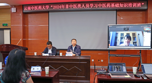 云中讯(继续教育学院)7月6日上午,我校“2024年非中医类人员中医药基础知识培训班”在呈贡校区开班,校本部、第一临床医学院、第二临床医学院和第四附属医院(玉溪市中医医院)共437名学员以线上+线下结合的方式参加开班仪式。副校长陈祖琨、第四附属医院(玉溪市中医医院)副院长张英出席开班仪式。