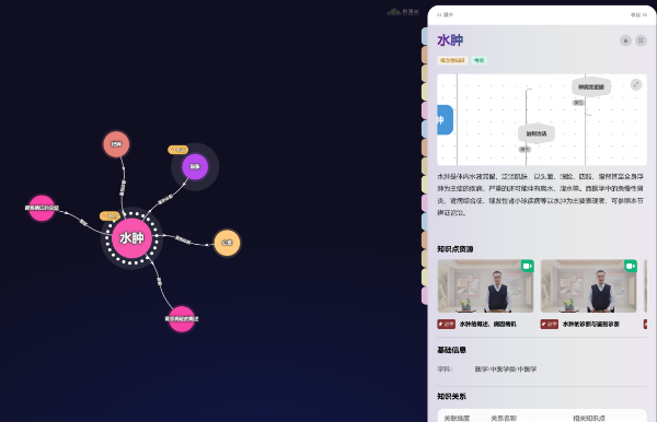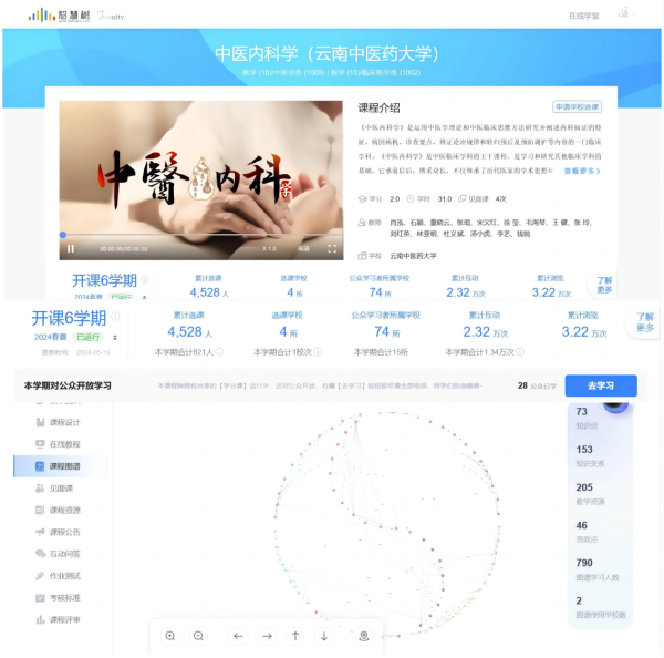 同时,全国共享运行的《中医内科学》在线课程也率先同步接入知识图谱,升级为“知识图谱AI共享课”,进行了传统在线课程模式的创新。在实际教学中可以帮助老师提升教学设计的内在逻辑,增强老师教学的针对性和有效性,促进“因材施教”。